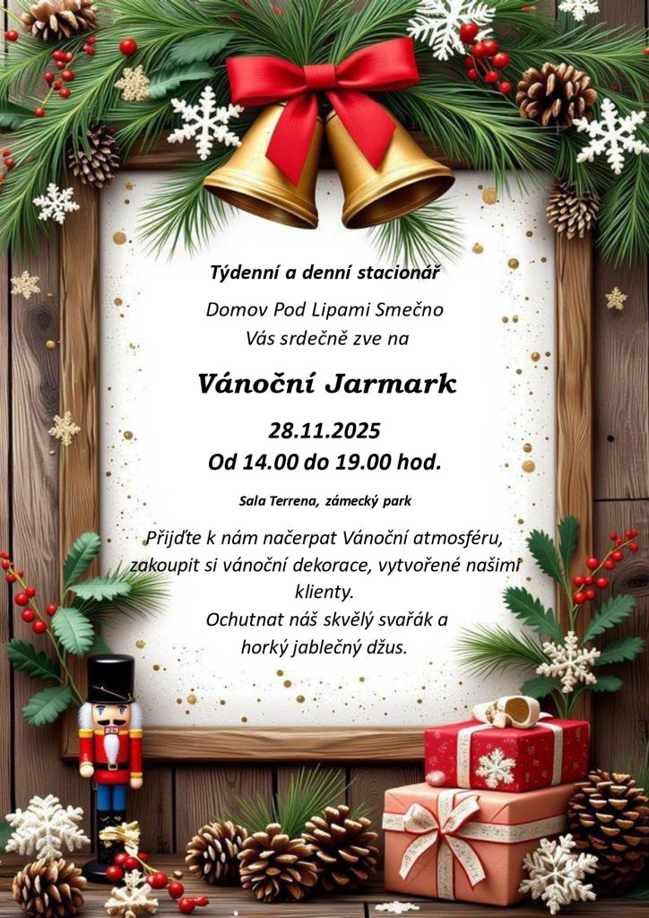 Srdečně Vás zveme na Vánoční jarmark, který se uskuteční dne 28. 11. 2025 od 14,00 do 19,00 hodin v historické budově Salla terreny v Týdenním a denním stacionáři Domova Pod Lipami Smečno. Přijďte k nám načerpat vánoční atmosféru a zakoupit si překrásné vánoční dekorace vytvořené našimi klienty.